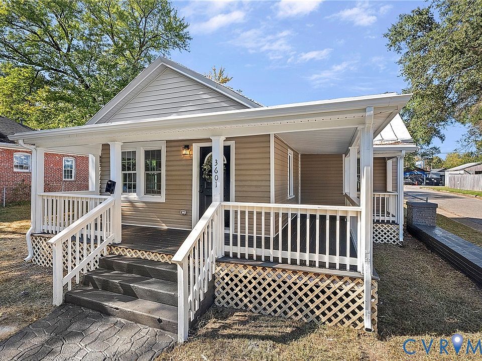 Enjoy this beautifully renovated bungalow just minutes from downtown Richmond! This charming home offers over 1,400 square feet of living space, a spacious yard, and thoughtful updates throughout. Inside, you'll find three generously sized bedrooms—each with large, multi-tiered closets—one full bathroom, and standout features that make this home truly special. Step onto the wrap-around covered front porch, then into a bright and spacious living room, ideal for entertaining or relaxing. The home features durable LVP flooring throughout, 9-foot ceilings, and ceiling fans with lights in every room for added comfort. The renovated kitchen includes shaker-style cabinets, granite countertops, stainless steel appliances, recessed lighting, and a large pantry for extra storage. The eat-in area offers the perfect spot to enjoy your morning coffee or casual meals. The second and third bedrooms are nicely sized with oversized closets and ceiling fans. The primary bedroom features a walk-in closet with multi-tiered storage, a ceiling fan, and direct access to the full bathroom. The updated bathroom includes tiled floors, a tub/shower combo with tile surround extending to the ceiling, and an oversized vanity providing plenty of counter space. You'll also appreciate the mudroom and a separate walk-in laundry room, perfect for additional storage or a convenient drop zone. Come see this one for yourself—schedule a visit today!