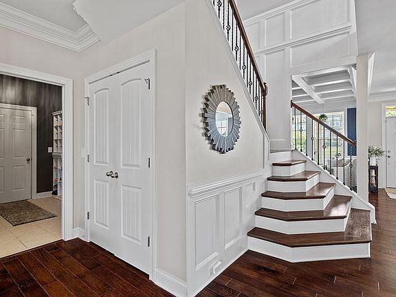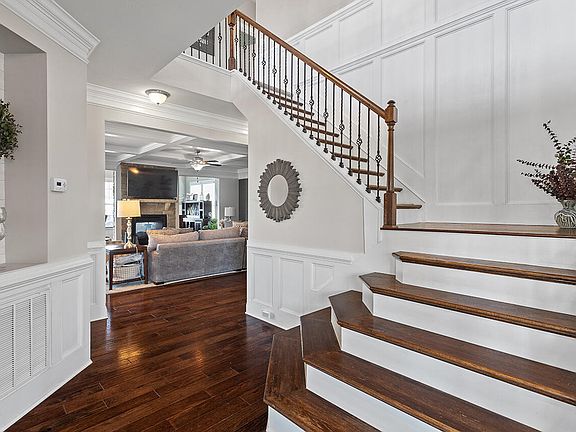 Lovely, well-maintained home in the heart of Wake Forest. The magnificent foyer opens up into a spacious floor plan boasting with wainscoting, coffered ceilings, crown molding and recessed lighting. A bedroom and full bathroom are located on the main level, perfect for guests. There is a large mudroom with a sink, right off the garage for storage. Bright, chef's kitchen featuring double ovens and a butler's pantry for ample storage and functionality. Gorgeous see-through stone fireplace in the great room and sunroom gives this space a cozy feel. Upstairs, you will find a large loft and a laundry room with tons of storage. Relax in the large primary bedroom or in the oversized shower and tub. All bedrooms have walk-in closets for even more storage. Beautiful outdoor space features large patio with covered area and lighting - perfect for enjoying warm summer evening gatherings. Fire up the BBQ!