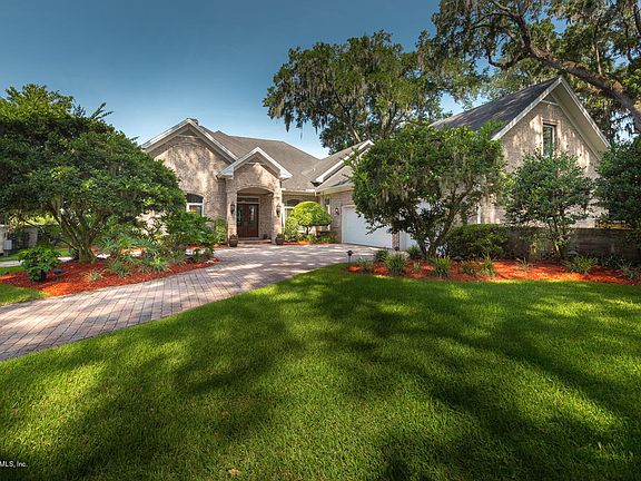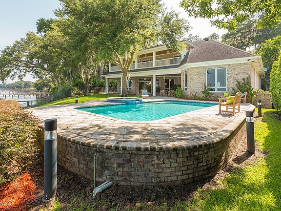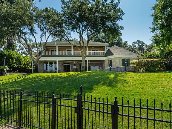 St Johns River gated Estate Home. Open floor plan with views to the river from almost every room. Large kitchen & family areas are ideal for entertaining. Spacious first floor, riverfront owner's retreat is private & quiet. Home boasts a Secure room with state-of-the-art-features. Downstairs guest bedroom convenient for in-laws. Extraordinary detail includes fine millwork, upscale appliances & hardwood floors. Upstairs features 3 large bedrooms, 3 baths, coffee bar, bonus room & tiled covered balcony to enjoy river breezes & beautiful sunsets. Wall of windows & doors capture the view leading to the covered lanai which overlooks pool/spa & NEW dock. Concrete block & brick construction. Generator. 3-car garage, circular drive with separate entry & exit gates. 50Yr Roof 2017. Low Maintenance