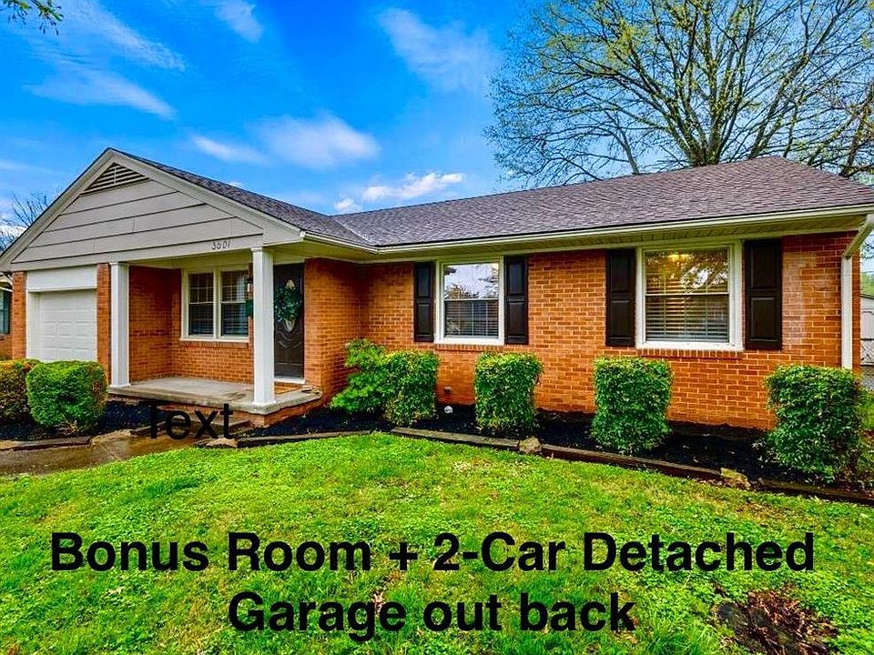 2 GARAGES + BONUS ROOM on back ! Nicely updated Brick 3 bedroom, 2 bath home. HUGE Open KITCHEN with updated Amish furniture grade kitchen cabinetry. Stainless Appliances. Gas Stove. Island and large dining area or sitting area. Has a BONUS ROOM Addition on the back. *** Also has SECOND DETACHED 2-car GARAGE as well along with the 1-Car Attached Garage. NOTE: Bonus Room could easily be a 4th Bedroom or Master Suite with private Master Bath entry. Furnace and Air Conditioner already serviced and inspected by professional heating and air company and in safe operating condition with Invoice / Report at the house. Covered back porch for outdoor living. Seller relocating, Immediate possession NOT in flood zone per professional survey paperwork **