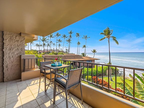 Experience true oceanfront living in this charming West Maui condominium, perfectly positioned on the 3rd floor with an unobstructed front-row view of the Pacific and the island of Molokai. This one-bedroom, one-bath retreat at Paki Maui offers 460 square feet of interior space plus a 90-square-foot covered lanai—ideal for watching whales breach and soaking in Maui’s spectacular sunsets. The concrete construction ensures peace and quiet, while the kitchen features a new range, dishwasher, and refrigerator. Located just moments from local grocery stores, bakeries, restaurants, and food trucks, this oceanfront gem delivers both convenience and value in one of Maui’s most desirable coastal settings. Staging items not included in the furnishings list.