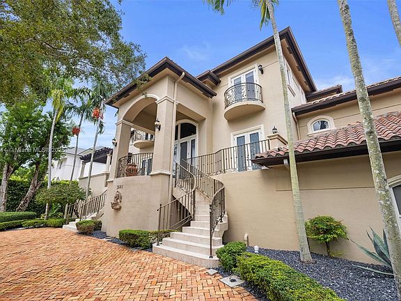 Situated within 24/7 guard-gated Entrada Estates, this Grove estate balances scale, function, and flexibility. Total area around 14,000 SF of A/C living space, including a rare downstairs level with second kitchen, lounge, gym/play areas, office, family room, and 3-car garage. All outlets sit above flood lines with a lift/pump station; primary insurable living starts on the 2nd & 3rd floors. Recent upgrades include new privacy landscaping, pool area enhancements, and new AC units. Features include elevator, 26 cameras, mosquito misting system, 8' solid-core doors, marble & Brazilian cherry floors, and a patio overlooking free-form pool with waterfall, outdoor shower, and cabana bath. Prime location near downtown Coconut Grove, marinas, tennis court, and daily dockage within the community.