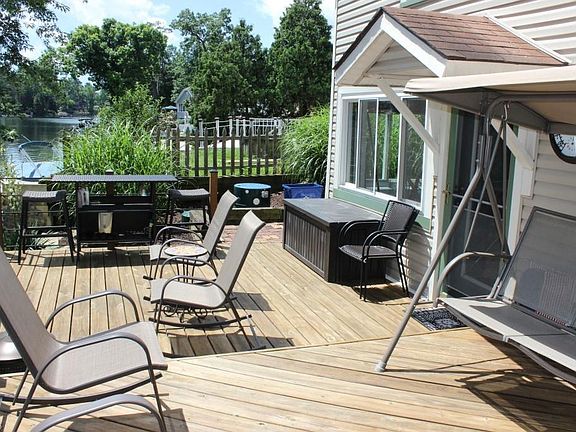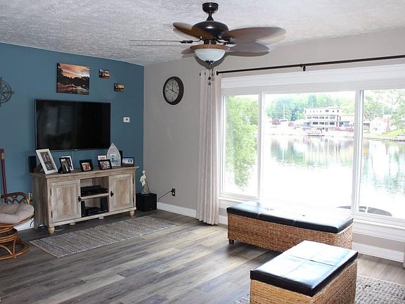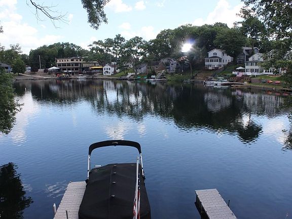 Lakefront on main chain of lakes and what a gem! Approx. 48' of lakefront with 4 bedrooms/2 baths, approx. 1689SF including finished walkout and move in condition* Updates since 2013 include kitchen with stainless appliances plus a pantry, updated windows & vinyl siding* Updates since 2015 include furnace, central air with app controlled thermostat (2016), deck (2016), vinyl plank flooring throughout first floor except bedrooms & bath; softener & well pump (2018)*Updated concrete patio with walk way around back of home (road side)* Open floor plan with mega view of lake* Walk out lower level with rec room with access to deck, laundry, 2 bedrooms & full bath- nice entertaining area* Excellent storage area on second floor* 2 floating docks* Huge parking area- at least 9 cars (room to build a garage)* All appliances included* Approx. 8x10 shed* Home warranty provided* Immediate possession upon close*