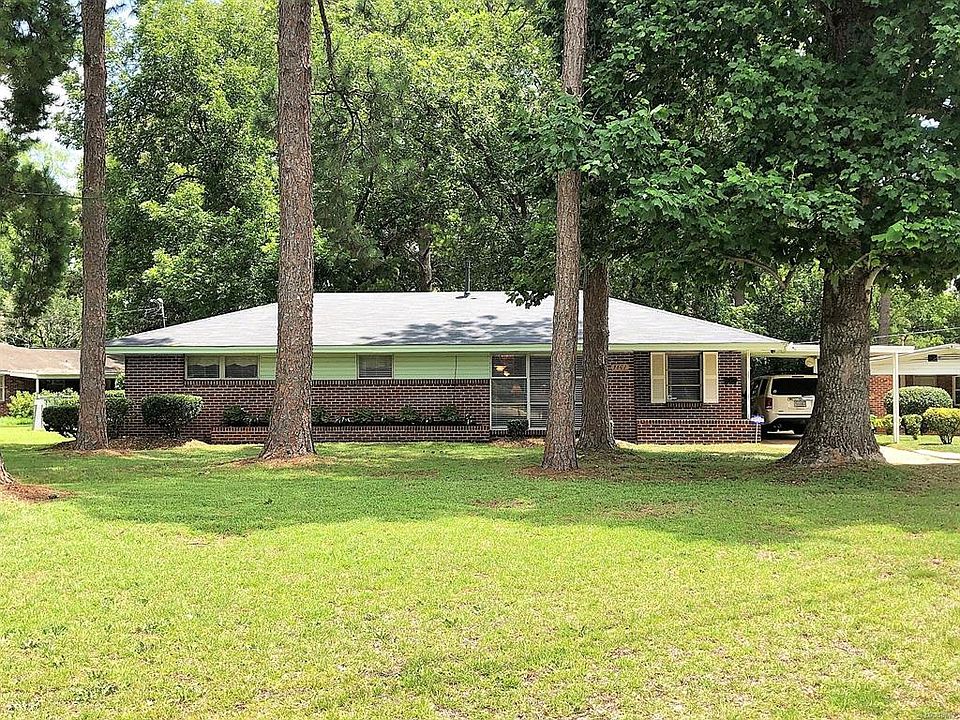 One of the prettiest and largest lots in Forest Hills! This adorable three bedroom, one and a half bath home has beautiful hardwood floors, BRAND NEW ROOF, new paint, new hardware for doors, and the refrigerator, washer and dryer remain also! This home has been well maintained and features a covered carport, covered screened patio, two outbuildings for storage and equipment, mature trees, a huge fully fenced backyard and lots of curb appeal. The character in this home shows with the brick planter out front and the beautiful solid pine paneled walls and built in banquette in the dining area off the kitchen. Best location and convenient to everything needed and situated right across from Eastern Hills Baptist Church.