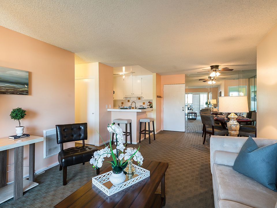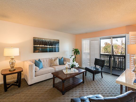Enjoy the wonderful amenities at the Estates! This beautiful upscale condo complex offers something for everyone! Play a game of tennis on the full-size tennis courts, take a dip in the pool, or relax in the spa. Challenge your friends to a game of foosball, billiards, or darts in the large recreation center, equipped with a full kitchen, fireplace, and lots of space for eating or relaxing with friends. Come home to this cozy two-bedroom, two-bath top floor unit with tree-top views. The galley style kitchen has plenty of storage and the open concept floor plan is great for entertaining guests. The large master bedroom has a large walk-in closet, a ¾ master bath with a second closet, and lots of bright lighting. The guest bedroom is tucked away for privacy, with a spacious walk-in closet and direct balcony access. PV unified school district! This is a great unit at the Estates and it won’t last long! Come see it today!