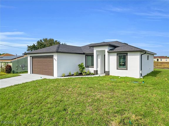 Beautiful New Construction Home in the best area in Lehigh Acres!!! Three bed, two bath, two car garage. calacatta quartz counters tops in kitchen and baths, impact doors and windows with Energy System Low-E keeping your home comfortable year-round while saving energy costs. Stainless-steel appliances, imported porcelain tile throughout, sprinkler system, corner lot. Easy access to Fort Myers, I 75, 10 minutes to RSW International Airport, close to school, shops, restaurant etc... Come to check this out and make your offer today!!!