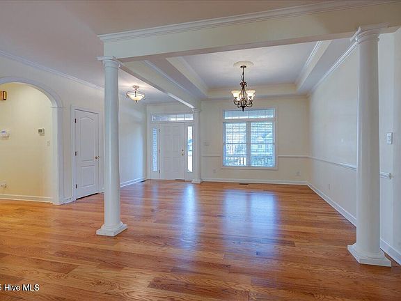 Welcome to Carolina Colours a community in New Bern NC where you can make this spacious 5-bedroom, 4 and a half- bath home yours. Boasting an open floor plan, this home is designed for both entertainment and relaxation, offering multiple rooms to cater to your lifestyle needs. Nestled on a golf course lot, this property has both charm and elegance. The 3-car garage provides parking and storage space along with convenience for parking.