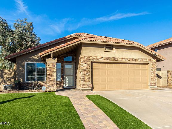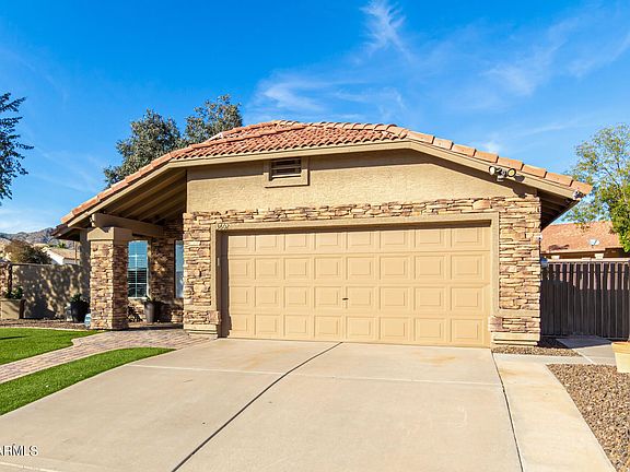 Come take a look a this delightful corner lot Phoenix home that's waiting for you! Providing 3 beds, 2 baths, 2 car garage, paver walkway, & charming stone accented facade, not to mention beautiful mountain views, and a backyard retreat boasting a relaxing above-ground spa, you'll love it! Inside, discover a living room, spacious family room, & a stunning kitchen complete w/SS appliances, ample cabinets/counter space, backsplash, & breakfast bar opening to a cozy nook. Other features include vaulted ceilings, neutral paint, windows w/blinds t/o, tile/carpet & wood floors, & custom ceiling fans. Main bedroom gives you en suite w/tiled shower, & walk-in closet. Bask in the lovely AZ sunshine of your backyard comprised of a covered patio, Pergola, raised wood floors, & spa. Stop by today!