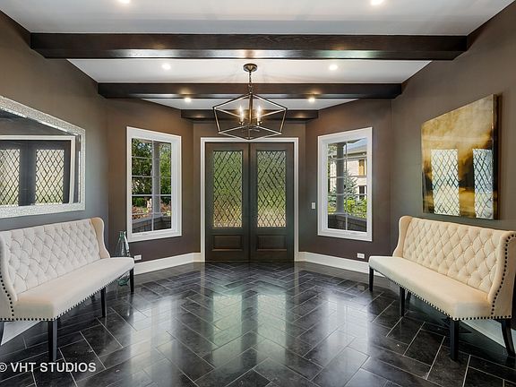 This grand house makes a statement and will steal your heart! Situated on 1 acre of beautiful grounds at the end of quite st., this Smart Home is 90% new and offers the latest trends in layout,design & fashion.Grand foyer welcomes you to sun filled great rm overlooking gorgeous yard with deck,limestone patio&fire pit.Beautiful custom gourmet kitchen with walk-in pantry,Sub Zero fridge,quartz counter tops, drawer microwave,breakfast bar& area,opens to great room.Butler's pantry,formal dining rm with doors opening to front patio. Office/library with french doors&built in shelves.One of the kind Master suite offers custom designed walk-in-closet&lavish private spa like bath w/marble floors,double sinks, free standing tub, oversized shower,bidet.Mudroom,2nd floor laundry,central vacuum,built in speakers,designer's lighting,3 car garage,sprinkler system,radiant heat fireplace.Flowing floor plan is perfect for gracious lifestyle & entertaining.High quality craftsmanship,finishes&amenities.
