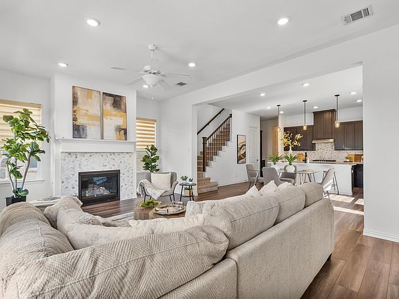 WELCOME HOME to this SHOW STOPPER in the highly coveted community, The Station! This stunning home is on a premium lot in the center of the way directly facing the multi-functional 36-acre Heritage Park which hosts many of the city's annual events. The location is PERFECT for morning or evening strolls along the walking trail just steps out your front door! The park boasts a variety of amenities including an amphitheater, splash pad, dog park, overlook, boardwalk, 3 baseball fields and so much more! This barely lived in Ashton Woods energy efficient beauty features a warm brick exterior and open living area with an abundance of natural light spilling in. The cozy covered front porch leads into a designated foyer with an 8' front door and 10' ceilings. Steps away is an open kitchen that is a chef's dream where you will find quartz countertops & a designer tile backsplash with quartz oversized island serving as the focal point of the gourmet kitchen. The 42-inch cabinets provide ample storage and the Energy Star stainless appliances and walk in pantry complete the space. The kitchen opens up into the living-dining area complete with a gas fireplace with decorative tile face. A pocket home office is directly next to the kitchen which serves as the ideal spot to get organized or set up a homework station. The primary suite has a double door entry into the spa-like bath featuring a dual sink vanity, soaker tub, separate ceramic tile shower with glass enclosure, Moen faucets, an upgraded lighting package with a walk-in closet. Upstairs you will find a massive game room and oversized secondary bedrooms along with two baths. The garage is pre-wired for a Tesla Wall Charger, and the home features a tankless water heater. The side yard has been professionally engineered with a French drain & well-maintained Zoysia sod. Walk pathways to nearby Sewell Elementary and Hudson Middle Schools. Close proximity to Medical City Sachse, parks, retail, restaurants & George Bush (PGBT)
