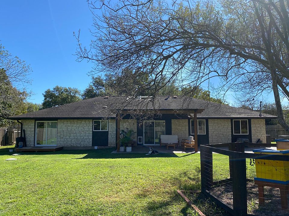 Available for December 2021 move in. Remodeled home in Shady Hollow on huge 1/2 acre lot. No carpeting, wood floors throughout the house. Large fenced in backyard perfect for dogs. Spacious covered patio outdoors. Atrium in the heart of the home (perfect outdoor lounging space for any indoor kitties!). Large living room with wood burning fireplace and wet bar. Spacious kitchen with smart appliances (fridge, dishwasher, microwave, oven) and walk in pantry. Master suite features double vanity, walk in shower, patio access, and walk in closet. Three other bedrooms are on the opposite side of the home. Lots of closets & storage space! Huge laundry room equipped with washer, dryer and utility sink. 2 car garage with extra space for workshop. Grow your own veggies in the vegetable garden. No HOA. Directions: From Mopac exit Slaughter Ln, go east. Turn Right (south) on Brodie Ln. Turn Right on Spotted Horse Trail, Left on Saddle Mountain Trail, Right on Socorro Trail. All the way up the street, house second from the end on the right. Amazing school district for families with children. Elementary School: Baranoff Elementary School District: Austin ISD Middle Or Junior School: Bailey, Middle Or Junior School District: Austin ISD Gr 9 High School: Bowie, Senior High School: Bowie, High School District: Austin ISD Renter responsible for all utilities (electric, water, internet). Owner takes care of septic maintenance.