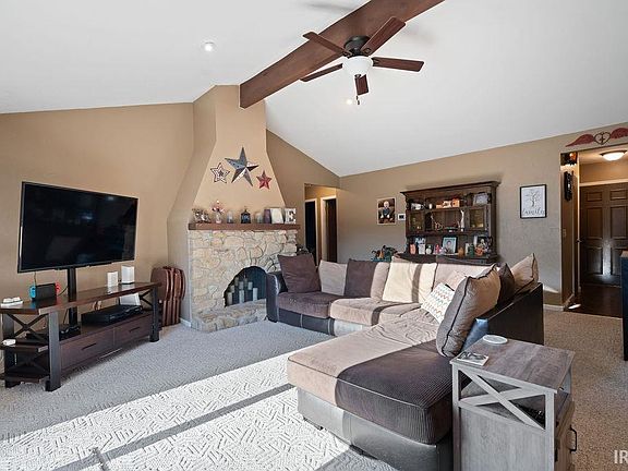 Decorative fireplaceStylish beamsHalf court basketball courtVaulted ceilingsCharming kitchen cabinetryLarge fenced in backyard