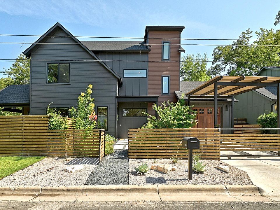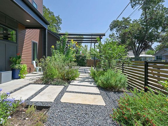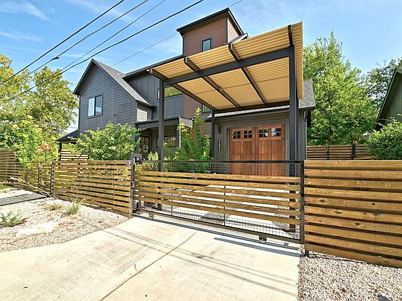 Don't miss this peaceful oasis, 2 yr old, 4BR/3BA, modern home in a quiet, established, mature-treed neighborhood, experiencing a wide array of residential/commercial/retail improvements. Exterior features large breathtaking, low maintenance, native landscape attracting butterflies & hummingbirds, limestone pavers, garden dining area, shed, & wrap around covered porch with built in gas grill & sink for morning coffee & evening dinner. Enter the home to find an open floor plan with luxurious engineered wood floor, modern light fixtures & streaming natural light via walls of windows with automated roller shades that open to the enticing garden. Kitchen boasts Jennair stainless steel appliances, 6 burner gas range with pot filler, an expanse of Kent-Moore shaker cabinets & dovetailed drawers, farmhouse sink, 3cm quartz counter & waterfall island. Down the hall, there’s a bedroom with 2 large windows & a designer’s full bath. An entry shoe bench leads to a garage with an epoxy floor, EV charger, giant attic storage with foam insulation, while the outside parking offers a motorized louver carport & solar electric gate. Up the floating staircase leads to a hallway with bookcase & chair, proceeding on to a laundry closet & onward to primary & 3rd bedrooms both with modern full baths with walk-in showers & floating cabinets, while the primary adds a large walk-in closet. 3rd floor offers a fun giant 4th bedroom or bonus/office room with endless configuration options. The home’s 3 AC systems, tankless water heater, foam insulation at all walls/ceilings & energy efficient windows provide maximum comfort, quiet & utility savings. Location provides walking access to an array of restaurants, bars, retail, recreation, gym, & offices, such as Springdale General, Austin Bouldering Project as well as a short trip in any direction to the vastness of burgeoning East Austin opportunities. Truly a wonderful place to call home. For walkthrough dollhouse video 3602thompson.com