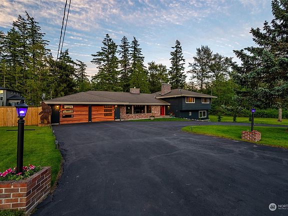 A modern vibe on a tranquil .67-acre lot in Bellingham. Every room in this home captures the surrounding lush green views. The gourmet chef's kitchen boasts a 48" cooktop, quartz counters & custom-tailored cabinets that flow seamlessly into the backyard entertainment oasis. The owner’s suite features Elfa shelving, designer bamboo window coverings, and a spa-like en-suite bthrm with a soaking tub. Guest bdrms have built-in desks. Entertainment is effortless w/ a wet bar, great ADU potential w/its own entrance. 2 gas-insert fireplaces add warmth and ambiance to the 2 lg living areas. This home is tech-savvy w/Ethernet, Nest thermostats & an EV plug. Located in the City, on a dead-end street offering privacy with easy Interurban trail access.