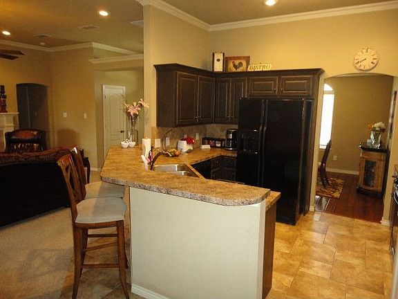 Remarkable 3/2/2 located on a desirable street. Hardwood floors in entry and dining room. Kitchen has dark antiqued cabinets and black appliances, and 2 table areas. Built-ins in living room and eating area. Crown molding in living room, special ceilings in dining room and master bedroom. Large master bathroom with separate shower and tub, 2 sink areas, and separate toilet.