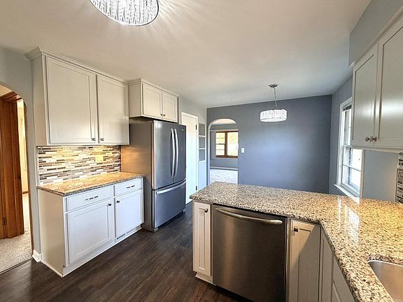 Charming brick ranch in a convenient Kenosha location! This adorable updated 2 bed, 1 bath home features brand-new carpet throughout, a newer roof, and an updated kitchen with granite counters, tile backsplash, stainless appliances, and quality KraftMaid cabinetry. The spacious living room is filled with natural light from large windows and offers great flow into the kitchen/dining area. Lower level provides tons of additional rec room living space and storage. Exterior features a detached garage, and a large fenced in yard ready for your personal touches. Solid, clean, and move-in ready--perfect for a first-time buyer, downsizer, or investor opportunity!