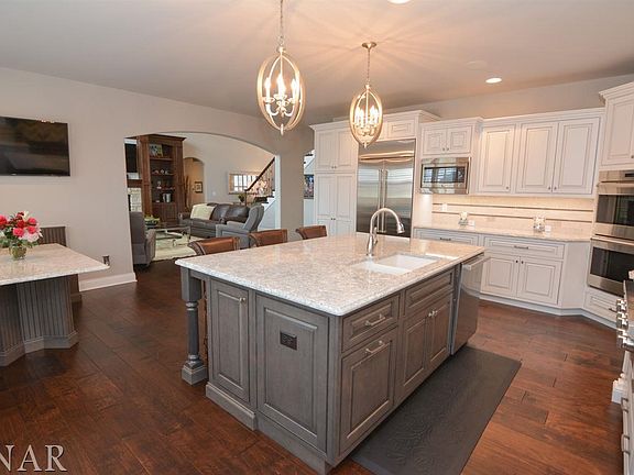 Sophisticated & luxurious retreat on the pond at Trails at Sunset Lake! Grand 2-story entryway welcomes you home into a voluminous layout made for entertaining! Gourmet Chef's Kitchen w/ abundant cabinetry, Quartz Counters, a huge island & luxury appliance package. Basement features daylight windows, wet bar, theater room, work out room, full bath & additional bedroom! Outdoor living space includes low maintenance decking, sprawling patio, outdoor kitchen, firepit & view of pond! Every detail was carefully selected & quality crafted. Rare opportunity to purchase a brand new custom built home for a fraction of the cost of building it yourself!