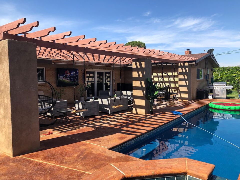Pool service fee covered by owners- SERVICED BY PROFESSIONALS -DAVID POOL & SPA. Ac filters change's covered by owners. Outdoor patio with 52' TV and built in swings. Large yard and 2 car garage. Side area for RV parking up to 50ft. Concrete pad.