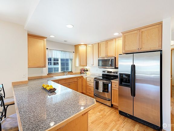 One story, 3 bedroom 2 bath living on quiet street in Mariners Ridge Villas! Granite tile counter tops, stainless appliances, bar seating area, great working space, double sinks and hardwood floors in this kitchen. Master includes full bath and walk-in closet. Cozy living room with gas fireplace. Single car garage with an additional parking spot for quests. Amazing beautiful Anacortes Forest Lands hike just down the road. What a great way to spend your afternoons. Living in Anacortes is a dream come true with the beaches, lots of hiking trails and beautiful views to enjoy.