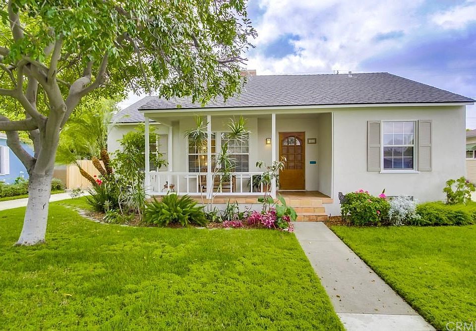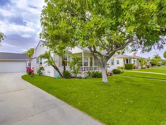 This is a very special and meticulously maintained home! The location is absolutely ideal-just a 1/2 block walk to beautiful Wardlow Park. Exterior and interior have just been freshly painted. Inside has original hardwood floors throughout that glow in a light sheen. Living room has a wood burning fireplace and windows overlooking the covered front veranda. There is a cozy corner dining area just off the kitchen. Kitchen has been updated with light birch cabinetry, garden window, white appliances, gas range, deep sink, tile counters and colorful backsplash. Inside laundry has additional pantry area and exit to rear yard. Master and front guestroom are light filled with double mirrored closet doors. 3rd bedroom has a sliding glass door leading to huge back yard with patio with retractable awning and mature avocado and citrus trees. Behind the 2 car garage is a large planting area ideal for an organic garden. This home will sell very quickly so make sure you see it soon!