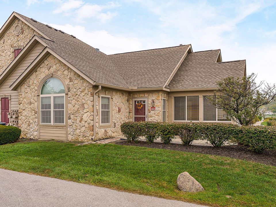 This popular Epcon Abbey model combines easy, single-story living with thoughtful updates and modern comfort. The spacious kitchen is the heart of the home—open to the great room and ideal for both everyday living and entertaining. Enjoy abundant cabinetry, generous counter space, and seamless flow into the dining and living areas. Two spacious bedrooms each offer walk-in closets, providing exceptional storage and privacy. The primary suite features an updated full bath while a second full bath accommodates guests or family. Freshly painted throughout, this home has been meticulously maintained and showcases a warm and inviting atmosphere. The cozy gas fireplace anchors the great room, adding charm and comfort during cooler months. Step outside to a lovely brick paver patio, perfect for morning coffee or evening relaxation.. Updates provide peace of mind: new roof (2024), new HVAC system (2022), and new hot water heater (2023). Every detail reflects care and pride of ownership. Residents enjoy access to a clubhouse and pool, as well as nearby Powell walking paths for outdoor enjoyment.