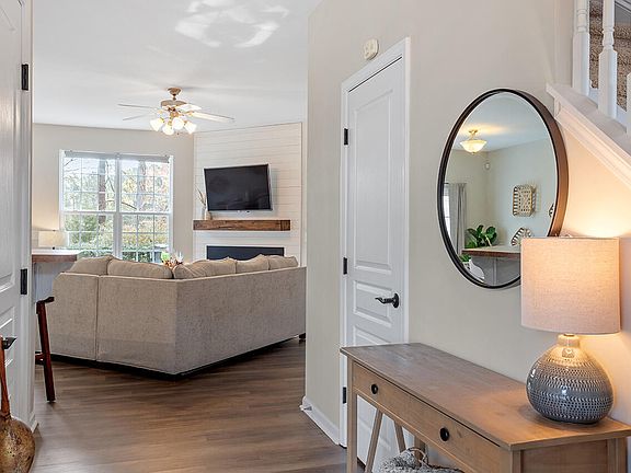 Beautiful 3 BED 2.5 BATH, with Flex Room on the 1st floor! Modern, Open Kitchen and Breakfast Area. LOTS of natural light with stunning views from back patio and bedrooms looking out onto Lake Elton! Vaulted Primary Suite with WIC and Private Bathroom. W/D on 2nd floor. Upgrades: HVAC was replaced in 2022. All kitchen appliances were updated in 2021. 1st floor vinyl flooring upgraded in 2021. Storage room on back patio. Close proximity to Duke University, NCCU, and easy access to I-40, Highway 55, and I-885. Short walk to Pool and Clubhouse. 2 assigned parking spaces.