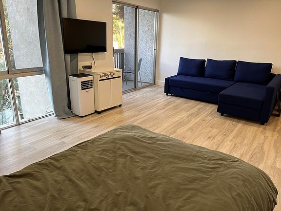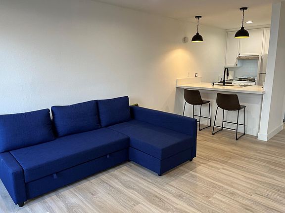 A luxury condo in highly-sought out community, the Estates, located in the award-winning Palos Verdes Peninsula Unified School District! Enter into this gorgeous unit where you will be greeted with a sweeping views of a resort-style community lush with trees, koi pond, and nature, where you can relax with tranquility and serenity everyday. This stunning studio is completely remodeled with contemporary beach-style wood floors, new kitchen cabinets with Quartz countertops with a breakfast bar countertop, new bathroom cabinets, and a full-size closet. One covered parking space is included and on-site laundry. You will gain access to all the amenities that you typically find at a resort including: hotel-like pool, jacuzzi, sauna, clubhouse with table tennis and billiard tables, fitness gym, BBQ area, and tennis courts. Conveniently located near Crenshaw, Hawthorne, and PCH, proximity to shops, restaurants, parks, schools, and trails. Can be leased unfurnished or partially furnished with a full-size bed, extendable couch bed (for guests), and breakfast bar stools. One year lease: $2,100 per month unfurnished or $2,200 per month partially furnished. Tenant pays electricity.