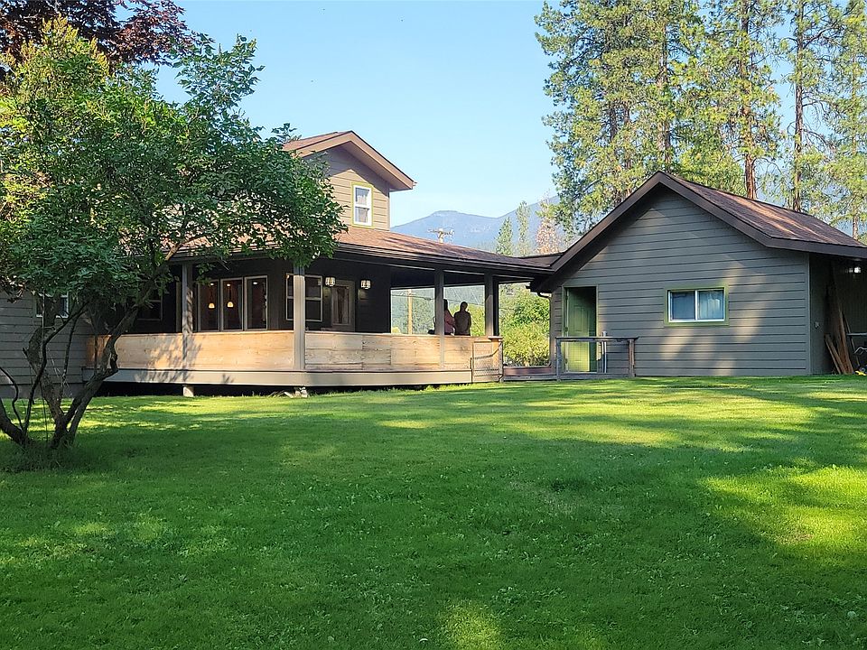 Occasionally, a property comes available that presents an opportunity to live in concert with nature, where you experience a familiar feeling of coming home, a place with water ambling along under a canopy of mature deciduous trees, tall tamarack and pines and cedars. 1.13 acres of lush green lawn, meticulously cared for and 2 homes with elbow room and privacy create a sanctuary. An 8' fence privatizes the ambiance in this subdivision located just 3 minutes from Polson. In 2008, the main home was completely updated, from the studs in and out, new electrical 12 wire throughout home and garage, plumbing all new. More recently a covered deck wrapped 2 sides of the 1940's homestead, and a newly engineered septic system installed. The upper level room was recreated as 2 possible bedrooms, that share a bathroom w both tub and shower units.. Or this could be a fabulous primary ensuite. On the Main, original oak hardwood floors were restored, the kitchen fully updated, appliances, counters and island. The garage was wired, insulated, rocked & finished, and a cabin was built near the creek complete with kitchen, laundry, bedroom, and bath, loft, deck and carport. The sound of the rushing bubbling brook mitigates traffic noise in spring and summers. The two structures, and both lots are being sold together so that the creek is accessible to residents of either lot. The cabin septic drain field too, is a newer pressurized system, located on main house lot. There is a water right and the sprinkler lines are buried from the creek to the fence line. A 2 hp pump serves several properties, not difficult process to install a personal 1.5 hp pump and disconnect from group pumping system. Each lot has its own private driveway off East Shore Route. The Olds Villa subdivision is a special neighborhood of 6 home sites. If you are a horse lover, resident seller has ample pasture on an adjoining property, so horse accommodations can be available. Truly, this is a little Shangri-la! The CCR's are being restated, and are forthcoming. Shown by appointment only.