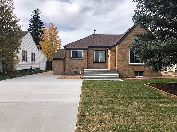 Come check out this newly renovated 4 bedroom, 3 bathroom all brick home! It has hardwood floors in living room, dining room, kitchen, and main level bedrooms, brand new LVP flooring in basement living room and bedrooms, and bright new tile in all three fully redone bathrooms. The kitchen includes a stainless steel refrigerator, dishwasher, new sink with garbage disposal, overhead microwave, and a gas range/oven. A washer and dryer are included in the laundry room, which has walk-up access from the backyard. New sod and sprinklers cover the front and back yards, and there is an extra wide front driveway to park on and provide access to the detached garage in the rear. Dogs are allowed with an additional pet deposit. The house is in a great location, just a few blocks south of Lions Park and close to downtown Cheyenne! Tenant is responsible for gas & electric, water/sewer/trash and lawn maintenance. Absolutely no smoking allowed in house or on property. Dogs welcome. Deposit equal to one month's rent due at signing.