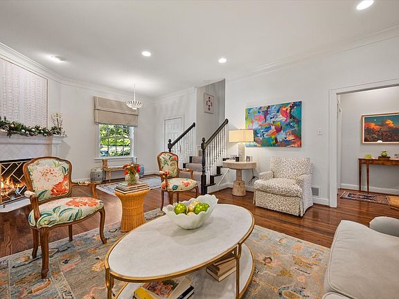 Charming fireplaceTimeless architectureLarge covered patioMarble surfacesBright thoughtfully finished bedroomsSoft designer palettesClassic facade