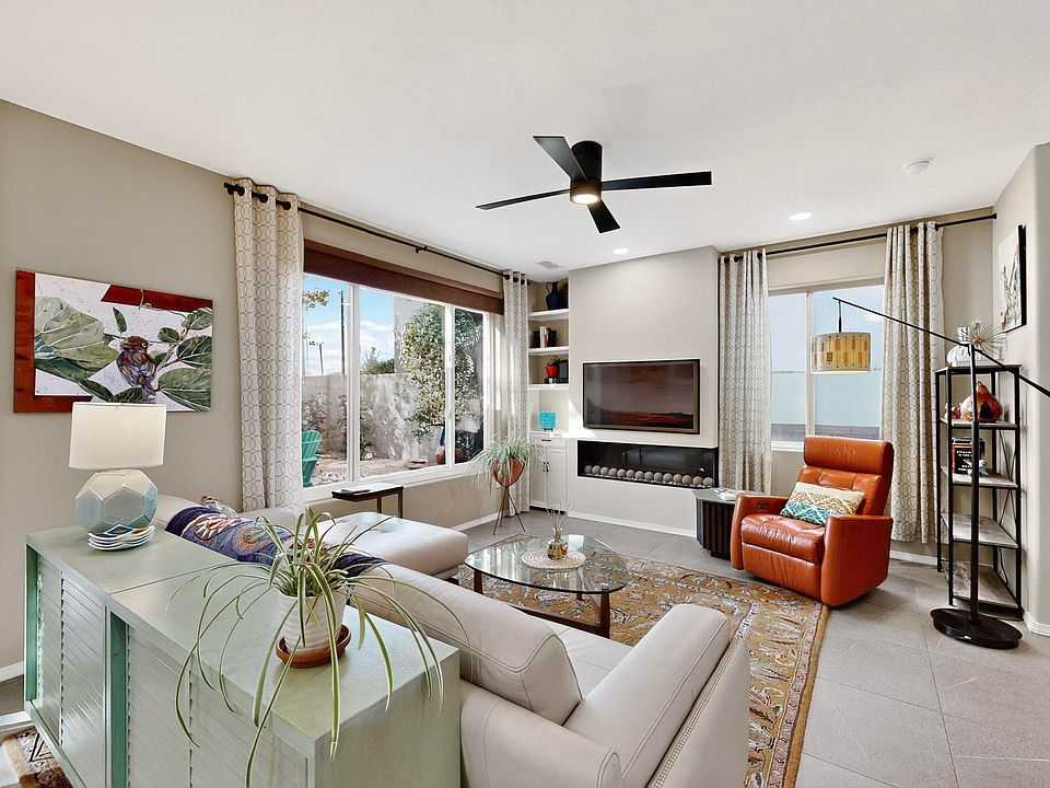 Beautiful move-in ready townhome with private Bosque trail access! The stunning 2024 kitchen remodel features designer cabinets & GE Cafe appliances, flowing into a bright living area with custom lighting & a sleek electric fireplace. Adjacent to the living room is a charming dining area, providing direct access to a covered paver patio and low-maintenance landscaped backyard. Upstairs offers two bedrooms, two updated baths, and a versatile loft perfect for an office or creative space. The spacious primary suite includes a private deck--ideal for morning coffee or watching hot air balloons. Recent upgrades include a new roof, HVAC, tankless water heater, premium flooring & new stucco. Walk to restaurants, coffee shops, gyms, and more from one of Albuquerque's most desirable locations!