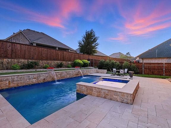 Lightly lived in & BETER than new, this best-selling NORTH FACING Highland Homes floor plan features TWO primary suites with loads of upgrades. Designed for both comfort and entertaining, the home offers a large dedicated study, three car epoxied garage, an expansive open concept living, kitchen, and dining area with soaring ceilings, natural light and a private in-home theater perfect for movie nights & game days! The extended primary suite includes a spa-like bath with dual vanities, No carpet, a walk-in shower, large soaking tub, make-up vanity, and a massive closet. The second primary suite features its own en-suite bath and walk-in closet, ideal for guests or multi-generational living and separated from the rest of the home. Step outside to your own backyard oasis, complete with a sparkling in-ground pool with travertine surround and patio, relaxing spa, multiple water features, and covered exterior patio, featuring a gas stub for outdoor built in kitchen great for summer gatherings and private relaxation. Enjoy additional privacy with no front neighbors and tranquil greenbelt views. Located in a lakeside community, you’re just a 4-minute walk to lake lewisville where you can walk out the front door and launch your kayak or paddle board at the end of the street. Explore 7+ miles of nature trails, frisbee golf, fishing ponds, two resort-style pools, multiple parks and outdoor venues that blend nature and luxury living. This home truly checks every box, upgraded, spacious, and perfectly positioned for relaxation and entertainment. A TRUE must-see! ***Additional lending incentives available, contact agent for details! including DOWN PAYMENT OPTIONS***