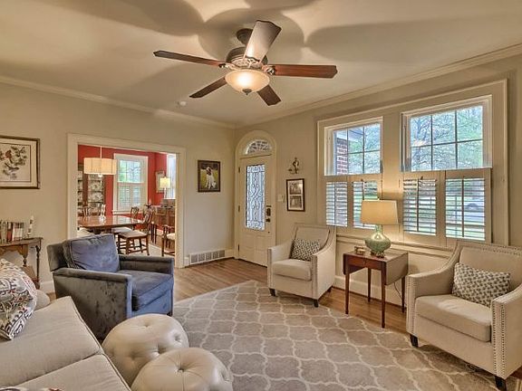 Lovely Shandon home with 4 bedrooms and 3 baths. Living room with gas logs fireplace, opens to dining room. Updated kitchen with granite countertops, tile backsplash, stainless appliances, and wet bar. Downstairs master with walk-in closet and private bath. 2nd downstairs bedroom with private bath. Office, separate laundry area. Hardwood floors and high ceilings throughout the downstairs. Two large bedrooms upstairs. Screened porch. Spacious deck overlooks private fenced backyard. Shed workshop area. Home offers lots of charm and character.