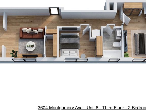This newly renovated 2-bedroom apartment features a modern, efficient layout complete with an in-unit washer and dryer for ultimate convenience.