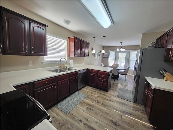 GREAT HOUSE, GREAT NEIGHBORHOOD, GREAT SCHOOLS! Totally Move-in Ready!Open Floor Plan! Vaulted Ceilings in Great Room, Master Bedroom! Great view from Deck that backs to woods w/ view. Luxurious Master Bath w/ separate shower & jetted jacuzzi tub!Double vanity w/ make-up counter. Beautifully updated Kitchen with cherry cabinets, stainless steel appliances including double electric oven and ceramic floor! Finished lower level with 9" foundation pour, Large Rec/Family Room! Bedrooms with Egress Window. Full bath with custom tile shower and glass door. (2) separate walk out basement doors, inc. double door leading to hobby/storage area! Brush Nickel door handles. Brand New Furnace and A/C. Newer Oversized water heater. Main floor laundry! Great Nu-Core LVT in Main Living area!Walk-in closet. Oversize 2 car garage that has a 9' ceiling with side exit man door with new steps leading to side yard. Low maintenance Vinyl sided exterior!