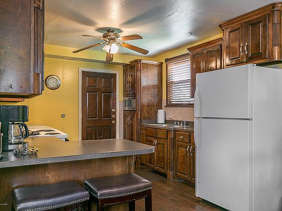 Adorable 2 or 3 bedroom home! Central heat and air, breakfast bar and beautiful wood flooring in updated kitchen and in Living Room. Private wood fence in large backyard. Patio and carport with a 1 car garage. Nice shop and storage in garage. Well maintained inside and out. Feels like Home!