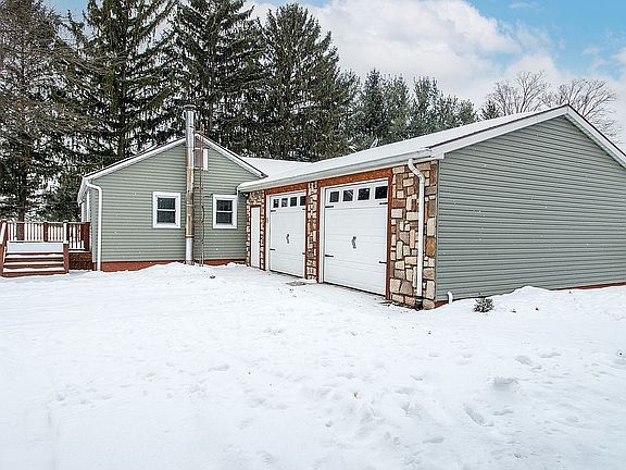Beautiful completely renovated 2 bedroom home situated on 1.7 acres that includes a pole barn, pond, wood shed, garden and chicken coop. Features a gourmet kitchen with granite countertops, subway tile backsplash, farmhouse apron sink, solid wood cabinets that feature pull out drawers which is great for storage, custom vent hood, Maytag stainless steel double door gas range that stays, custom island with butcherblock countertop and floating solid wood shelves. New tile flooring that flows from the kitchen through dining room and living room. Recessed lighting throughout front of home. New drywall ceiling and walls in kitchen, dining room, living room and hallway. Bedrooms have hardwood floors and newly framed spacious closets. Installed new insulation in outer walls of home along with blown in insulation in attic. Upgraded electric through majority of the home with new electric panel. Cedar front porch was re-stained Fall 2020. Other features include: Generac generator powered by gas line for peace of mind, gas furnace, central air, new windows on front of the home including beautiful large picture window in living room, submersible well pump & pressure tank, Kinetico water softener system and Samsung washer & dryer that stays. Outside features an extraordinary 30x42 pole barn that’s one of a kind. It’s perfect for entertaining and is heated by furnace & wood burner (most décor, pool table, basketball hoop and wood burner stays!). Property also includes a 24x30 wood shed, fenced in garden, 10x12 garden shed that was converted into a chicken coop in Spring 2020, fenced in dog run with pet door off back of home, attached 2.5 car garage and 1/2 acre stocked pond with beach and dock.