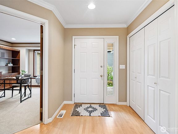 Thoughtfully designed for multi-generational living, this spacious Silver Beach home offers flexibility, comfort, and room to grow. Set on a quiet cul-de-sac near Big Rock Garden and scenic trails, it’s a peaceful retreat with nature right outside your door. The lower level has its own entrance, full kitchen, and laundry—perfect for guests or added independence. The main level features the primary bedroom and a dedicated office. The spacious living room flows seamlessly to the large wraparound deck, where you can relax and enjoy peekaboo views of the bay and mountains. With a low-maintenance, park-like yard, 3-car garage, and presidential roof, this home checks all the boxes for privacy, versatility, and everyday ease.