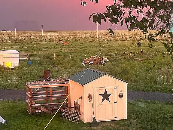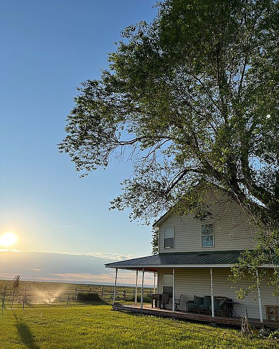 Farmhouse with wrap around porch, 2 car attached garage, large master suite, hay barn, chicken coop, trees, dead end road. All within 12 miles from Burns! Great solid stick built home is waiting for your updates and priced for quick sale. As is sale.