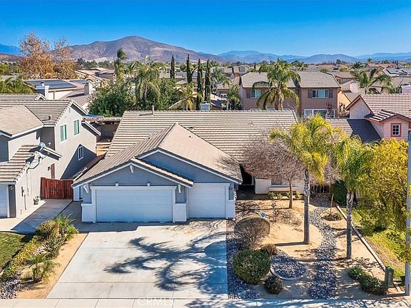 Beautiful single story pool home in French Valley. This home features 2,123 SF, 4 bedrooms, and 2.5 baths. Kitchen with solid counter tops, stainless steel sink, Refrigerator, and plenty of cabinets. Family room with a cozy fireplace. Formal living and dining room with high ceilings. Laundry area with washer and dryer included. Ceiling fans in the bedrooms and a whole house fan in the hallway. 3 car garage for all your toys with work bench, plenty of storage cabinet space and ample lighting. Also features tankless water heater and vinyl plank flooring throughout. Entertain family and friends with a beautiful backyard including a pool and spa. Close to Temecula wineries, entertainment and restaurants. Call for your private showing today!