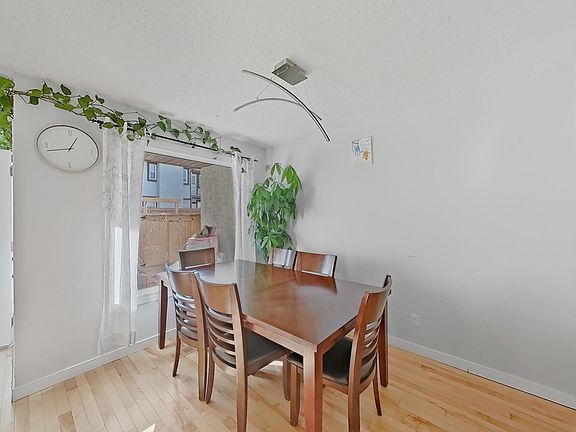 SUPERB LOCATION in family-friendly Kingsgate, Bisset! Just 2 blocks from schools, park, playground & transit. This well-maintained, renovated 3 bdrm, 1.5 bath townhouse offers 1173 sq ft with 2 energized stalls right out front. Enjoy hardwood floors, modern kitchen with updated cabinets, counters, SS appliances, pantry, and tile backsplash. The cozy gas fireplace and dining area open to your private fenced patio. Upstairs features a large primary bedroom, 2 generous bedrooms, and a 5-piece bath with double sinks. Home upgrades include vinyl windows & exterior doors (2015), HE furnace (2018), central A/C (2022), clay tile roof, and newer HWT. Furniture, televisions & gym setup can be included in price! Basement is open for future development. Well-managed complex with great neighbours, close to shopping, parks & all amenities. A move-in ready gem in a great community!