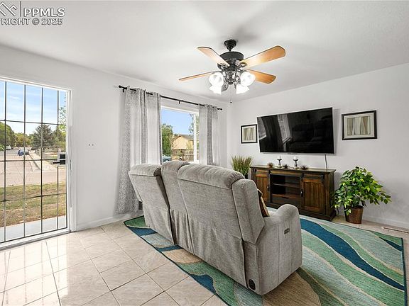 Beautifully updated one-level 4-bedroom home—rare for this area! Enjoy great natural light, a large primary bedroom, and thoughtful upgrades throughout. Nearly everything is new: roof with Class IV impact-resistant shingles, furnace, water heater, washer and dryer, stainless-steel appliances, carpet, paint, and more. The dining room opens to the great room for easy entertaining, with the kitchen set just beyond the dining area and featuring new under-cabinet lighting for a warm, functional workspace. A walkout from the dining room leads to the fenced backyard with mature shade trees, storage shed, and chicken coop—perfect for hobby or homestead living. The garage has been thoughtfully converted into a versatile finished space with a side door walkout and existing garage door—ideal for a workshop, home gym, studio, or extra storage, adding valuable flexible square footage to the home. Conveniently located near schools, shopping, parks, and military bases, with school choice and nearby charter options such as Atlas Prep available to families in the area. Property is being sold AS IS.