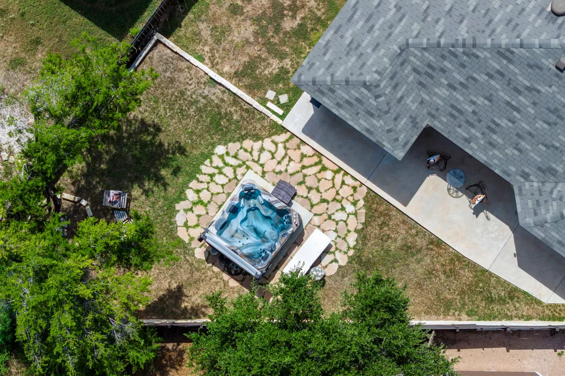 Hot tubLow-maintenance landscapingPremium lvp flooringFarmhouse sinkGlass panelGlass doorExterior fixtures