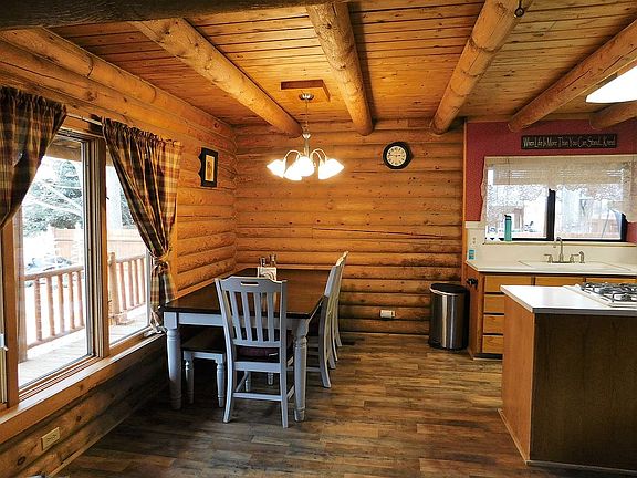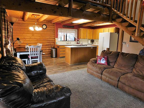 You will love this charming log home in the beautiful city of Menan! Located on a quiet, friendly cul-de-sac with beautiful full mature trees and yard. Beautiful flower beds bloom from spring until autumn. A row of delicious raspberries grows along the fence line. The wraparound porch is perfect for clear, starlit evenings. Great yard includes a 16x24 timber frame shed, and a small log shed. The main level consists of one bedroom, a full bath, kitchen with island and dining area, laundry room/mud room, and great room. Upstairs you will find two more bedrooms, with a jack and Jill bath, and an open loft. Basement has one more bedroom, family room, exercise room ( or office) and storage space. New central air, wood laminate flooring, and built in bookshelves. A beautiful view of the Menan Butte from the main floor bedroom! This is a wonderful home, neighborhood, and town!