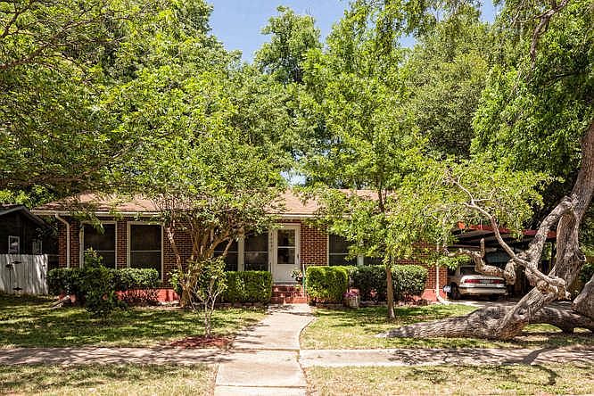 Adorable home on great tree-covered lot! Large living area with wood floors and fireplace with gas hook-up. Formal dining with built-ins, pretty windows and opens to the kitchen. Kitchen is large and has great counter space. Isolated master with wood floors and separate closets. Other two bedrooms are a nice size. Great study or gameroom, too! Laundry closet and great storage throughout. Beautiful backyard with inviting deck, storage building and pretty trees.