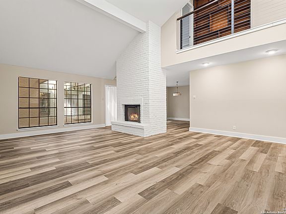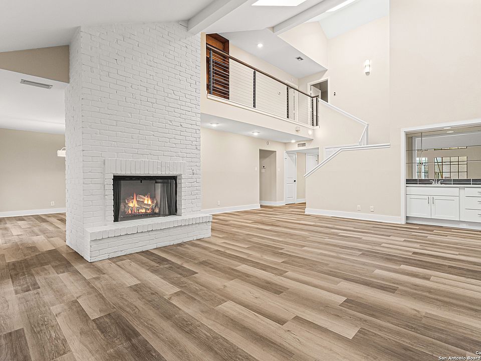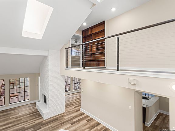 A rare, fully modernized townhouse in gated Idlewood within NEISD, offering unparalleled style and sophistication. The first-floor PRIMARY BEDROOM, dramatic living room with vaulted ceilings, fireplace, wet bar, and a stunning sunroom/terrace create the perfect setting for refined living. The chef-ready kitchen boasts custom cabinetry, granite countertops, and luxury vinyl plank flooring for effortless elegance. Upstairs features generous bedrooms and a versatile OFFICE / LOFT AREA ideal for work, media, or fitness. Skylights, bay windows, and an open layout flood the home with natural light, highlighting every high-end finish. Minutes from Northeast Baptist Hospital, about 8 miles to SAT, with quick access to Loop 410, Wurzbach Parkway, and U.S. 281 - schedule your private showing today and experience a one-of-a-kind residence.