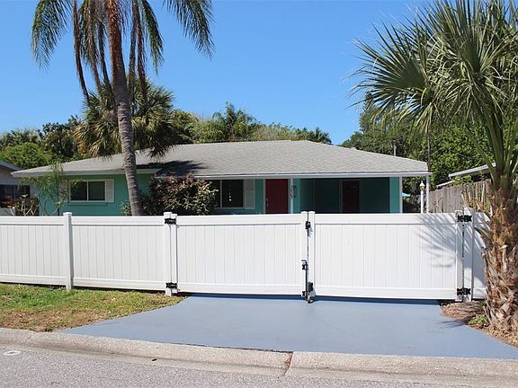 Available now. Turnkey furnished 2-3 bedroom rental home in centrally located in Indian Beach Sapphire Shores just North of downtown Sarasota and West of Trail. All utilities (water, yard service, pest control, alarm system, cable, high speed wifi, water and base electric) included in rent less an allocation for electric use. Negotiable lease terms. Pet Friendly. Fenced and privacy-gated with lush front and back yards, vintage terrazzo flooring, 2023 roof and impact windows throughout. Driveway and front patio is being redone to brick pavers. This classic and charming old Florida property is on a quiet dead-end street, and walking distance to Sarasota Jungle Gardens, shopping and two bayfront parks; minutes to Ringling School of Art & Design and Ringling Museum, New College, SRQ Airport, USF, downtown Sarasota and area beaches. The primary bedroom (Queen bed) and second bedroom (two Twin beds) have spacious closets and share a full bathroom with marble flooring and tub-shower combo. The sunroom with separate entrance features barn doors for privacy and can be used as either additional living space or a 3rd bedroom with Queen sleeper sofa and futon. The sunroom also features an armoire and clothes rack in the laundry room for extra closet space. The full second bathroom has a large tiled walk-in shower. The kitchen is fully equipped for cooking with all appliances and dishwasher, new refrigerator and microwave; and the home also has a laundry/utility room with full-size washer and dryer, and bonus outdoor clothesline for drying. Efficient tankless water heater; and plumbing has also been redone. Outdoors, relax in the Florida sunshine where there is plenty of seating on the two tropically landscaped patios. Carport, driveway and street parking available, and one small boat is allowed with approval. A rented studio apartment is also on the property so the rear yard space may be shared at times. Pet friendly two dogs allowed with approval. Non-smoking. Tenant pays $180 per month November April for electric and water, and $250 per month May- October. All other utilities are included in rent ($450 value). Seasonal rent December April $4,000 per month with a three-month minimum. Rate negotiable for longer terms. Can accommodate a monthly to annual lease. A 13% tax on rentals less than six months.