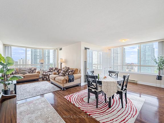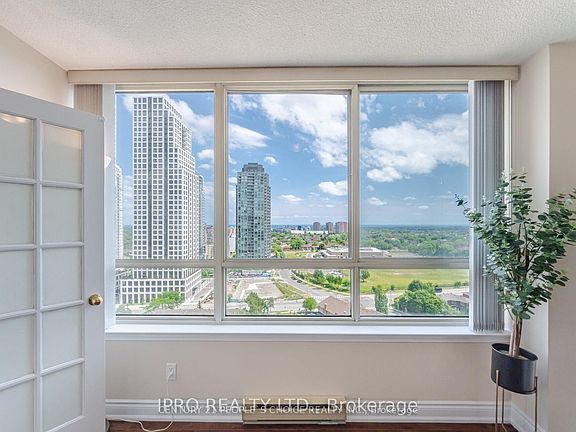 Welcome to this rarely available, sun-drenched 2-bedroom + solarium, 2-bathroom corner suite in one of Mississaugas most sought-after addresses The Towne. Offering an expansive 1,395 sq ft of thoughtfully designed living space, this home boasts unobstructed southeast views of Lake Ontario and the city skyline. Freshly painted and move-in ready, the smart layout features a bright, open-concept living and dining area with floor-to-ceiling windows, a modern kitchen with ample storage, a spacious primary retreat with walk-in closet and 4-piece ensuite, and a large second bedroom. The enclosed solarium with a door offers endless possibilities a third bedroom, private home office, or cozy den. All-inclusive living maintenance fees cover all utilities, high-speed internet, and cable TV. Includes two parking spots, free visitor parking, Airbnb permitted (no short-term rentals), and pets allowed with restrictions.Indulge in resort-style amenities: 24-hour concierge, indoor pool, indoor & outdoor Jacuzzis, sauna, indoor & outdoor gym, tennis & squash courts, party room, guest suites, and more. Unbeatable location steps to Square One, Kariya Park, schools, transit, GO Station, and major highways. This is more than a condo its a rare opportunity to own one of the largest and most versatile layouts in a prime downtown Mississauga building. Dont miss it!