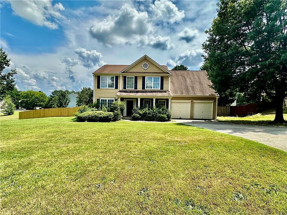 This charming and spacious residence featuring three bedrooms and 2.5 baths, ideal for comfortable living. The home includes a formal dining room and a versatile office or computer room, perfect for working from home or study. The eat-in kitchen is designed for both convenience and style, while the impressive two-story family room has lots of natural light thanks to its numerous windows and features a cozy fireplace, making it a great space for gatherings. The owner’s suite is a true retreat, generously sized with a sitting area and elegant tray ceilings that add a touch of sophistication. The master bath is well-appointed with a double vanity, a separate shower, a soaking tub, and a spacious walk-in closet, providing both functionality and comfort. Additional highlights of this property include a garage, a welcoming front porch, and a huge backyard featuring a patio and privacy fence, ensuring a secluded outdoor space for relaxation and entertainment. Septic and field lines have been replaced and new HVAC units are less than a year old. Set in a very private and friendly neighborhood with a HOA, this home is conveniently located near schools, shopping, restaurants, and major highways, making it an ideal choice.