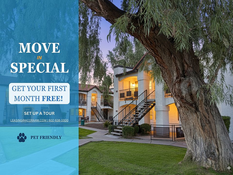 - Special offer! MOVE IN SPECIAL! 1ST MONTH FREE WHEN SIGNING A 13 MONTH LEASE OR AN 18 MONTH LEASE!